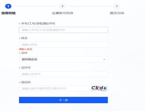 2. 输入学号/工号和图片验证码,点击【下一步】。